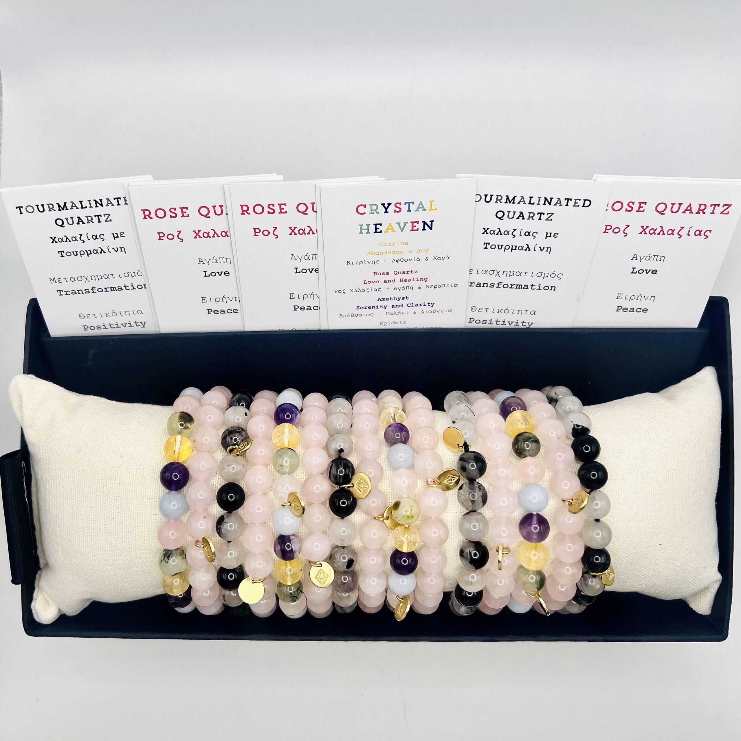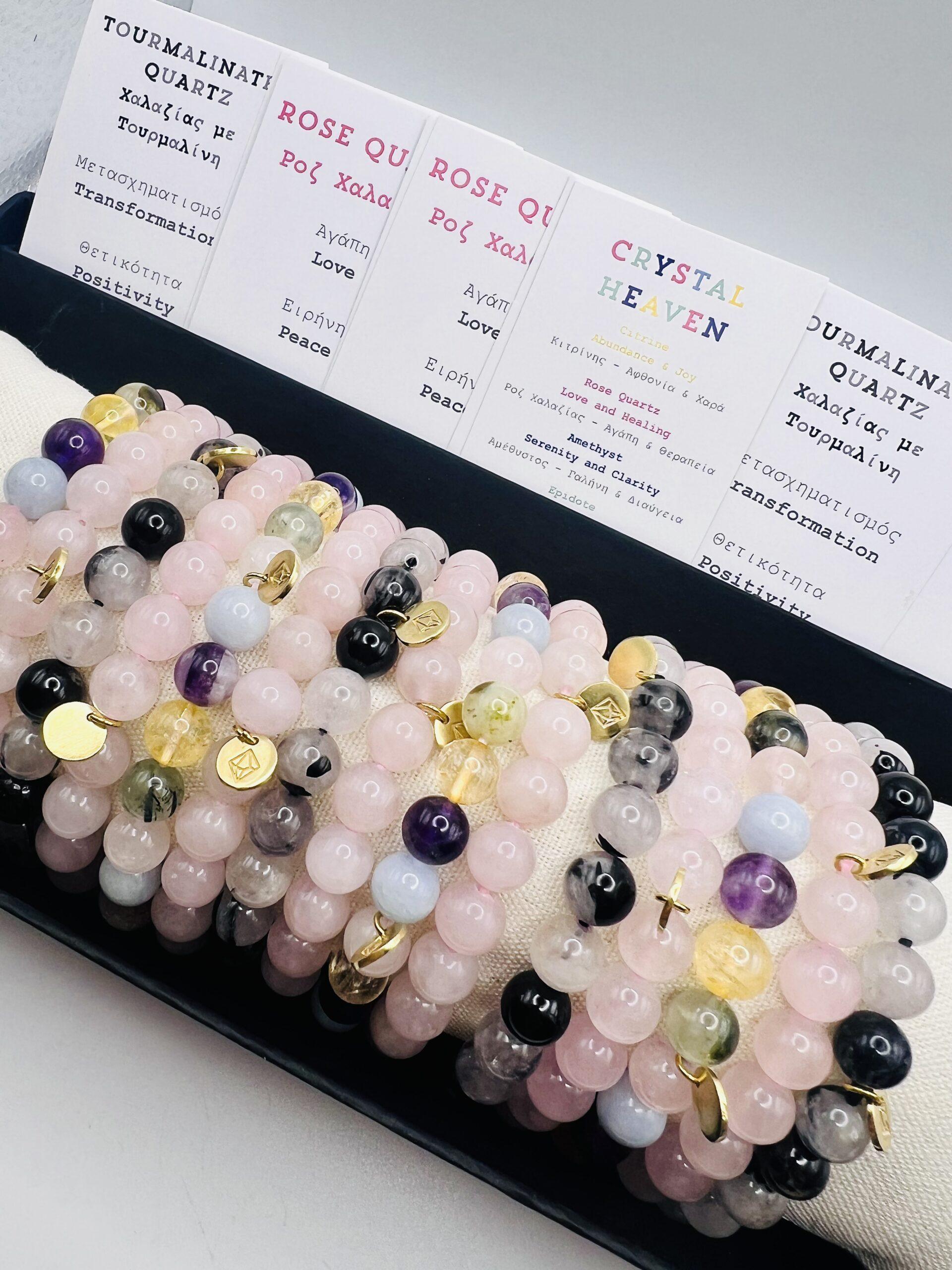 Ροζ Χαλαζία, Χαλαζία με Τουρμαλίνη & Crystal Heaven: Κιτρίνης, Ροζ Χαλαζίας, Αμέθυστος, Επιδοτο & Μπλέ Χαλκιδόνιο.